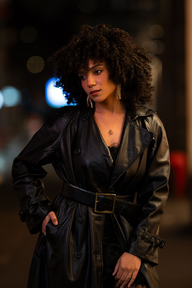 In a few of the images from the shoot, I used ambient lighting. However, for most of the images, I used a strobe with a larger softbox. The key to these images was to make the lighting feel more natural and make it feel like Jada (the model) was lit by more practical lighting in the scene, like the car headlights or lights from a store front. In order to achieve these, I had my assistant feather the light, so only part of it was hitting the subject.