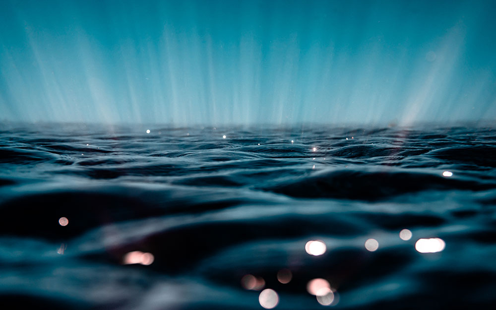 Z 6, NIKKOR Z 35mm f/1.8 S. An inverted photo of the surface of the ocean as the light from a setting sun pierced through and created beautiful rays.
