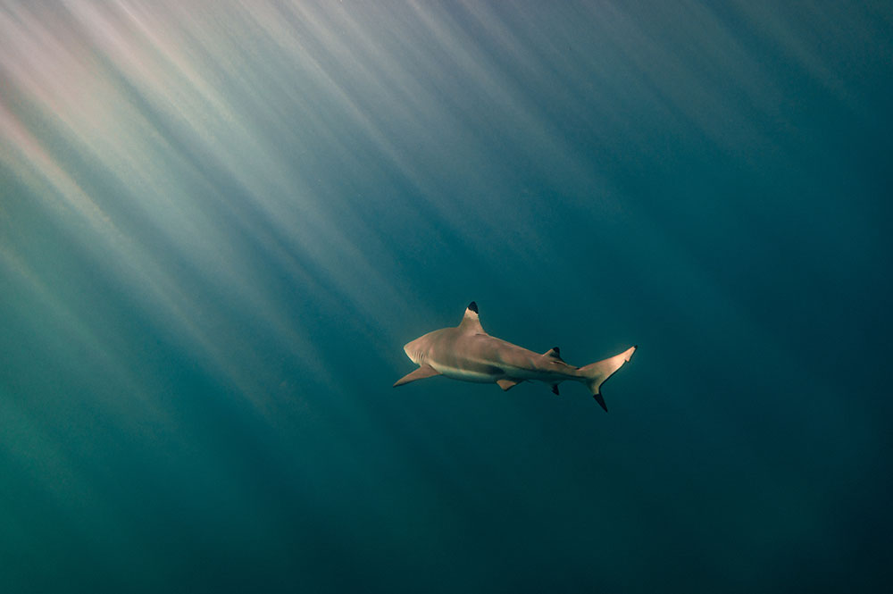Z 6, NIKKOR Z 35mm f/1.8 S. A black tip reef shark swimming off while light was shining through the ocean creating an almost paint brush stroke like effect. One of the most beautiful scenes that I've had the opportunity to capture.
