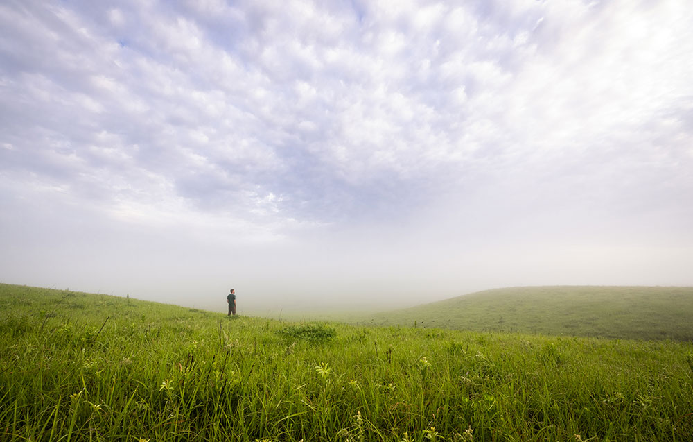 It was on a work-related trip to the Konza Prairie Biological Station [https://kpbs.konza.k-state.edu/] in Kansas, installing and photographing environmental monitoring equipment, that Erik captured one of his favorite images. He explains how “Konza Fog” was created: