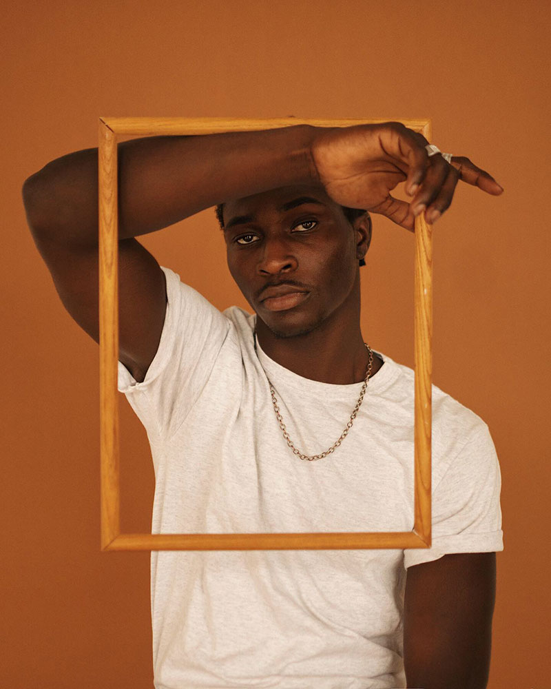 This photo wasn’t planned at all. The model travels back and forth between Baltimore and New York a lot, so when I saw he was in town, I asked if he wanted to come by my studio. I had that old frame laying around from the thrift store and the plain shirt in my closet, so I had him put that on and pose with the frame until I got some shots that I liked.