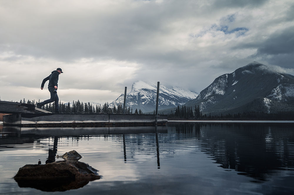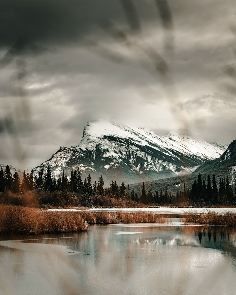 Photo taken on the shores of Vermilion Lakes in Alberta, Canada minutes after Anthony fell knee deep in thick mud to gain this perspective.
