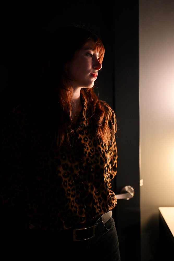 In this photo of Kate, she’s bathed in red lighting with bright backlighting. This would normally be a nightmare for autofocus with the strong backlighting and low contrast on her face, but the Z5II locked on perfectly. Light work.