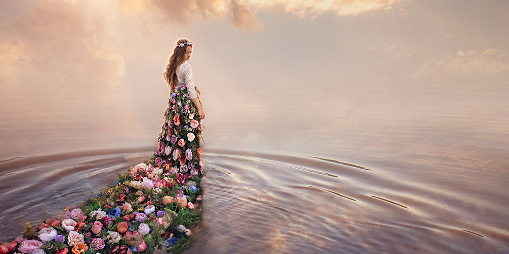 "This was a shoot I got to do for a billboard project for ProPrints. I was given a small budget, and tasked to create an image that would go on Colorado billboards. I wanted to create an image with several of my favorite things in a single frame: My girl, flowers, water, and sunset sky. I spent several days making the skirt and waited for a calm evening at sunset to go to the lake to get the shot."