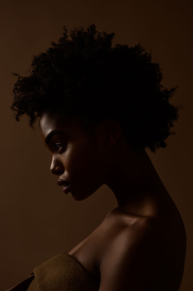 Tiffany’s image uses low-key lighting to highlight her jawline and hairstyle. I wanted a mix of moody and calmness in the image and I believe we achieved that.
