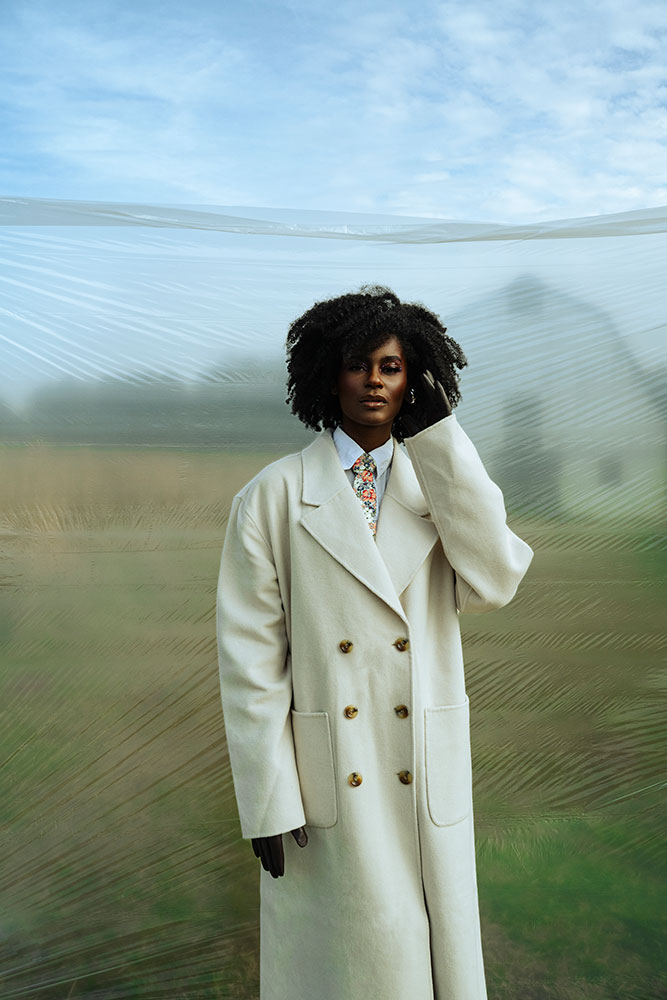 In the image that the translucent material completely softens the background Inari explains, “Something about the edges not being there felt cinematic to me. Felt like we were in an entirely new space.” She went on, “The photos showing the edges (above) were unintended to be honest but brought a certain charm to the image. Because of the plastic, it felt like it was blending into the sky like a drawing.”