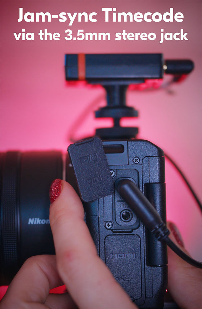 With the introduction of ZR firmware 1.10, filmmakers can now jam sync timecode using LTC (linear timecode) and a wired timecode generator that plugs into the 3.5mm mic jack.